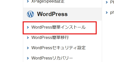 エックスサーバーのサーバーパネルから「WordPress簡単インストール」を選択します。